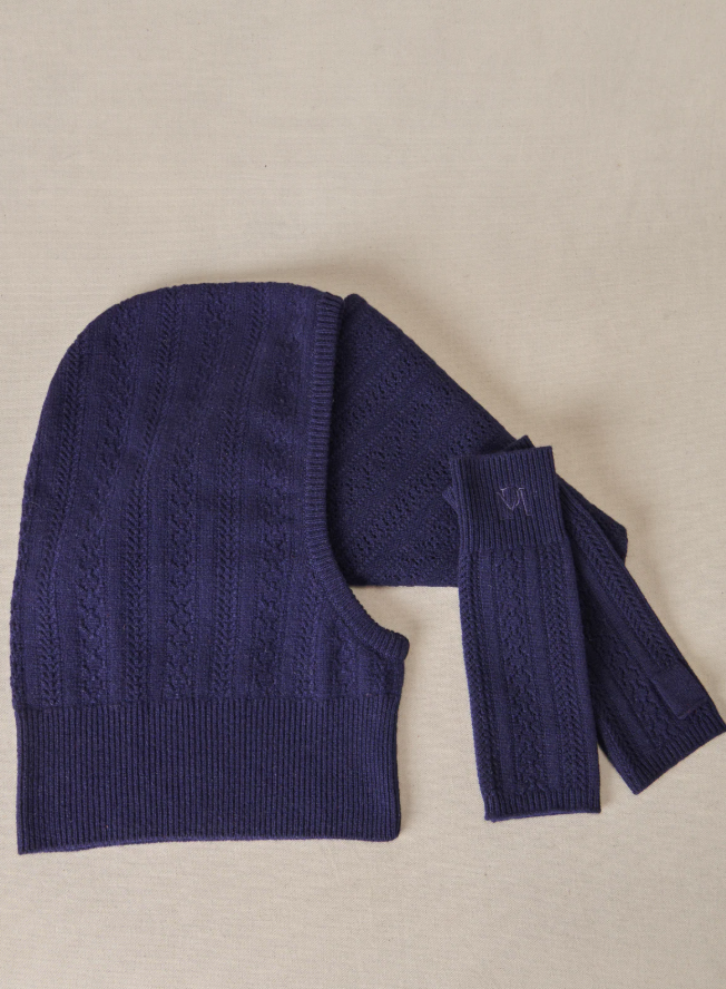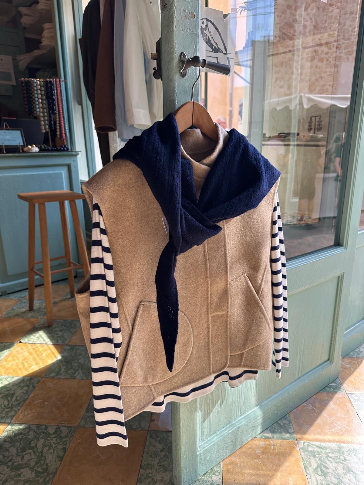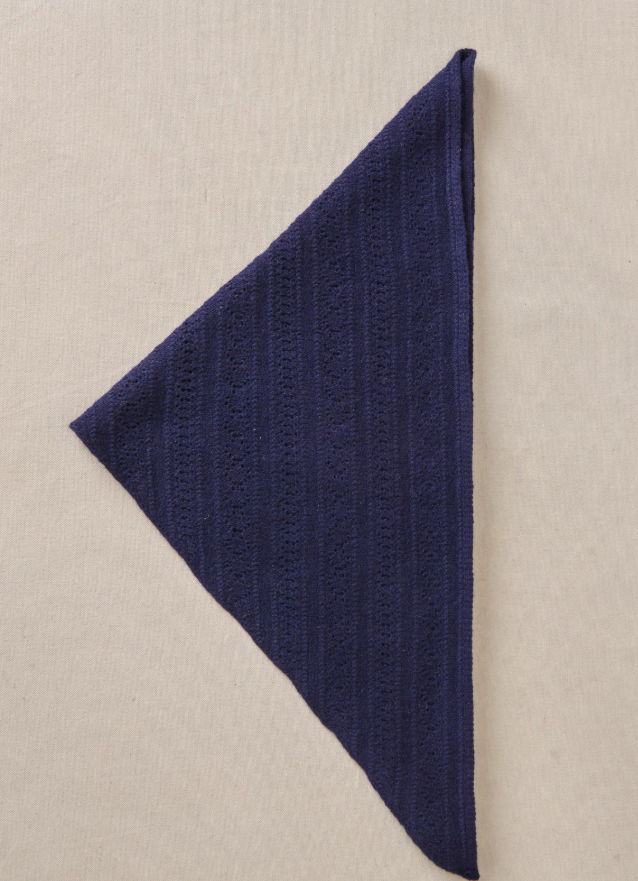 Alma – Colorida Bufanda de triángulo de lana – azul marine.