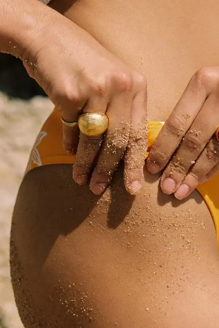 Está bañado en 3 micras de oro de 18k y disponible en tres tamaños.