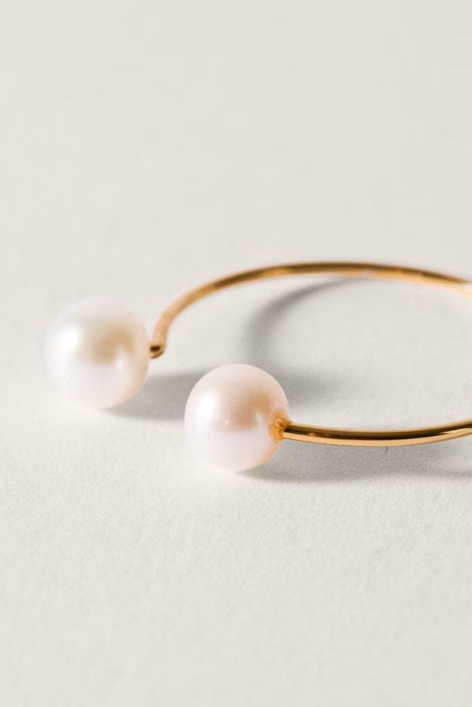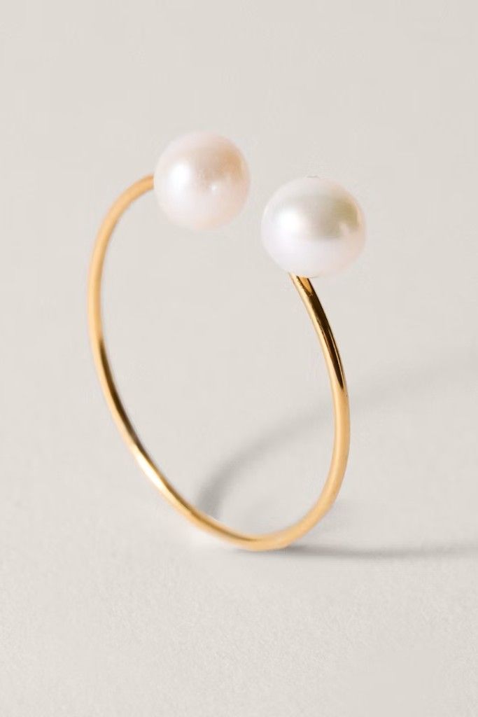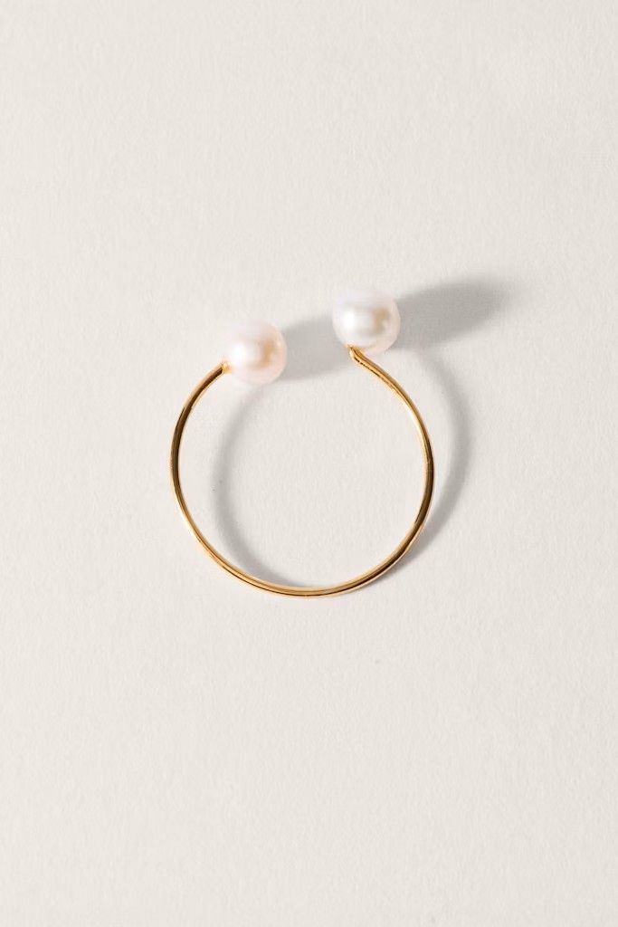 Anillo de plata de ley 925 y chapada en 2 micras de oro de 24k con incrustación de dos perlas pequeñas.