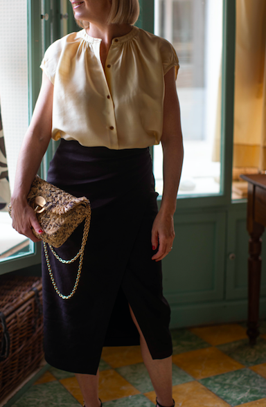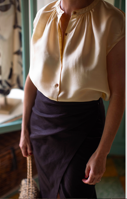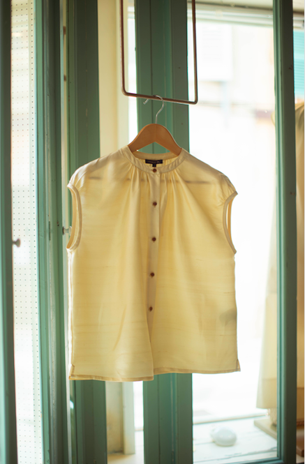 Blusa sin mangas en color beige de seda.