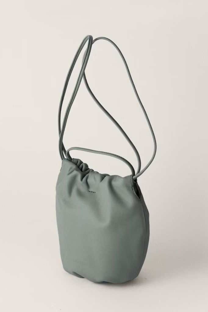 Bolso bandolera tamaño mini realizado en piel de vacuno fruncida y con forro interior de algodón.