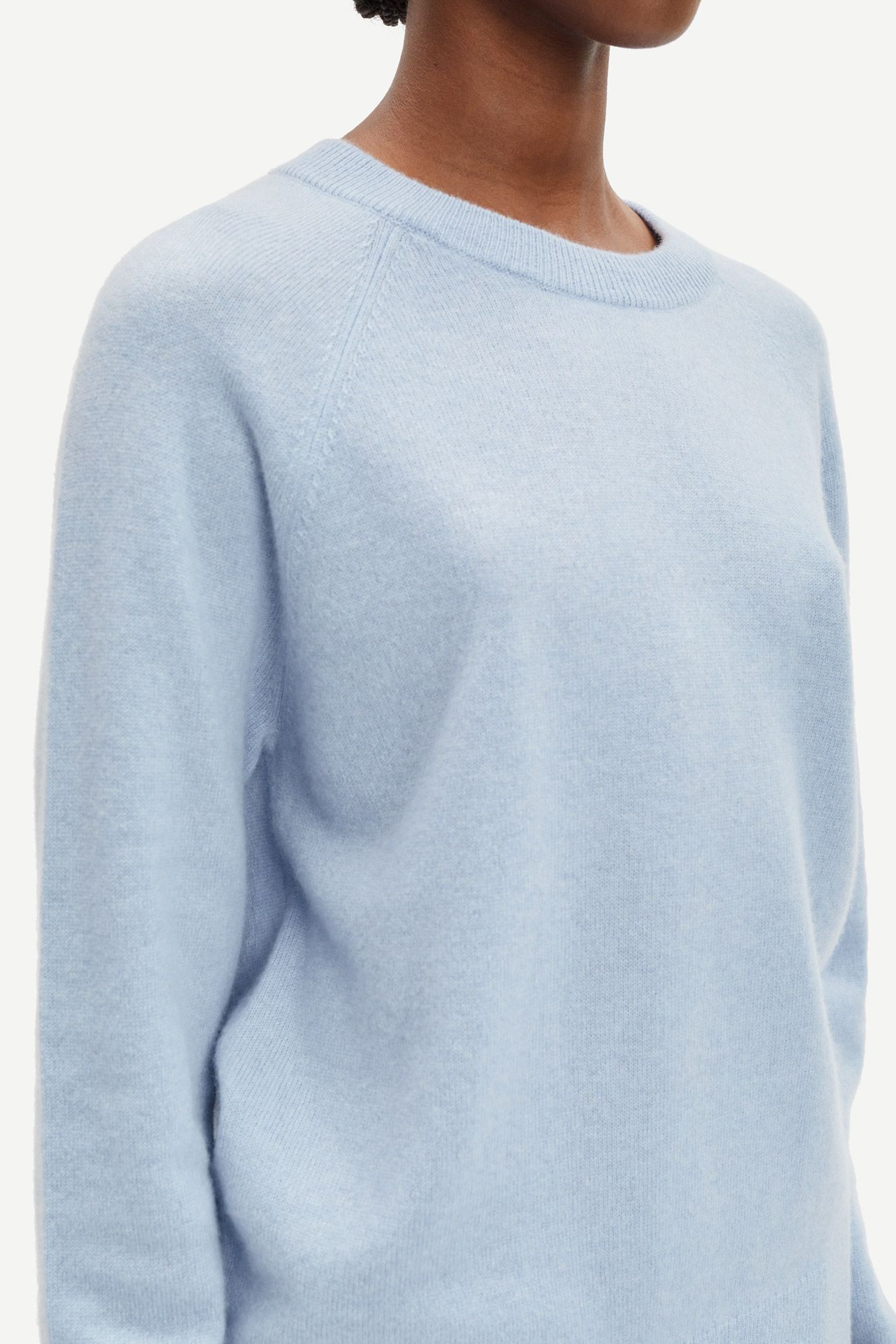 Suéter holgado con mangas raglán. Detalles de punto acanalado en cuello redondo, puños y bajo. Tejido de galga fina. Material principal: 100 % cachemira. Este producto cuenta con la certificación GCS. GCS promueve la producción responsable de lana de cachemira.