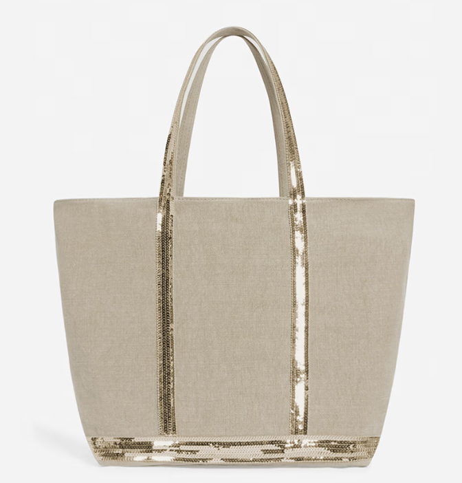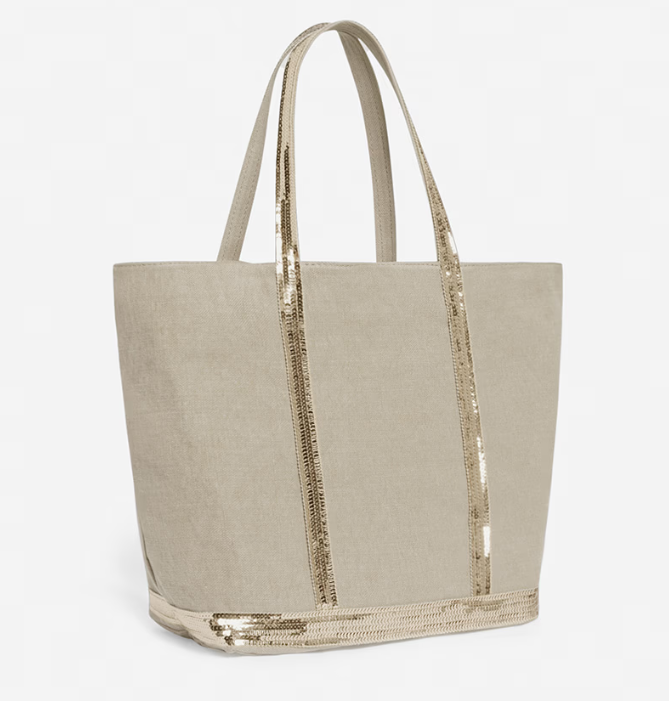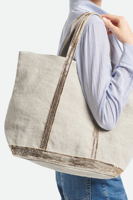 Tote Cabas de lino y lentejuelas de gran tamaño.