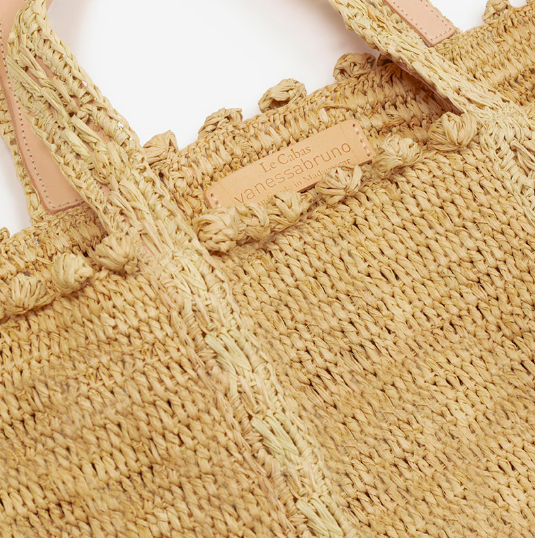 Etiqueta interior realizada en piel, con “Le Cabas Vanessa Bruno Handmade in Madagascar”.