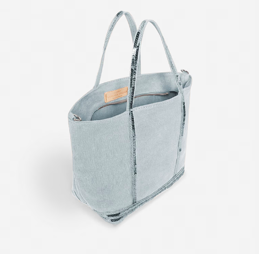 Fabricado en nuestros talleres situados cerca de París, desde 1998, el bolso Cabas es un imprescindible de Vanessa Bruno. Presentado aquí en una versión de lino belga, este modelo ligero y ecológico está, por supuesto, realzado con las lentejuelas que le dieron fama. En formato mini, la talla S destaca por su volumen limitado, lo que la convierte en el compañero ideal para llevar sólo lo imprescindible… y algún extra como una cartera o unas gafas de sol.