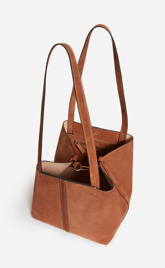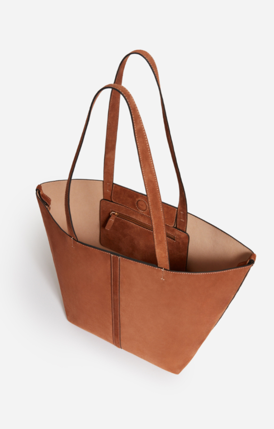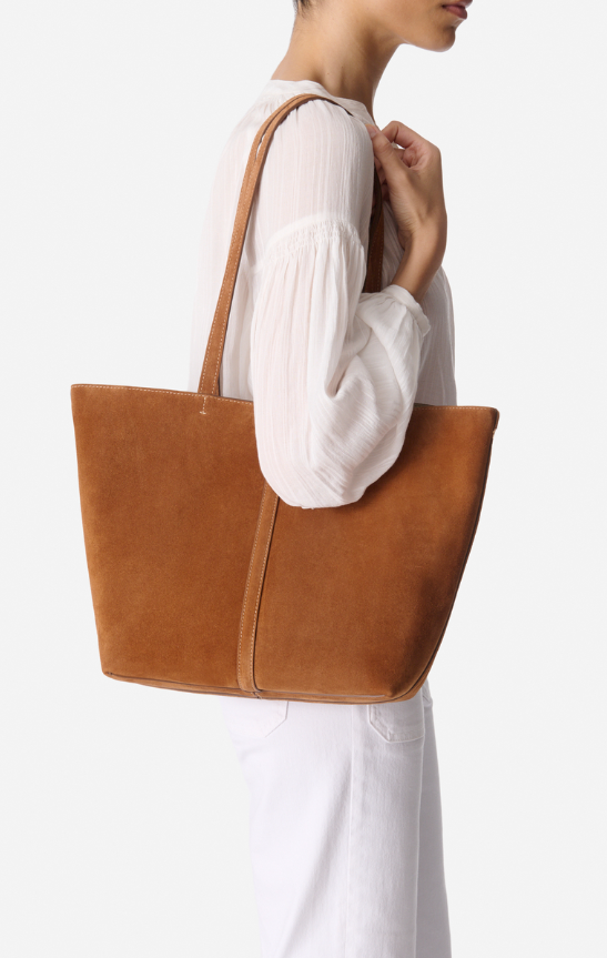 Bolso tote de suave piel aterciopelada con un diseño elegante, ideal para el uso diario. El tamaño pequeño es perfecto para un iPad, cuadernos y sus artículos esenciales de diario. Un básico funcional.