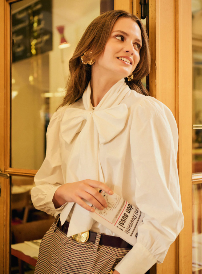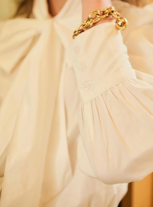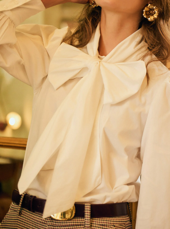 Tobias – Camisa lisa de cuello lavallière – Blanco.