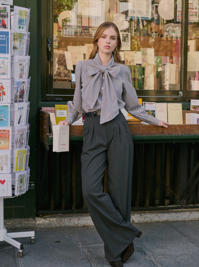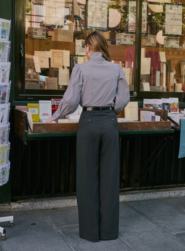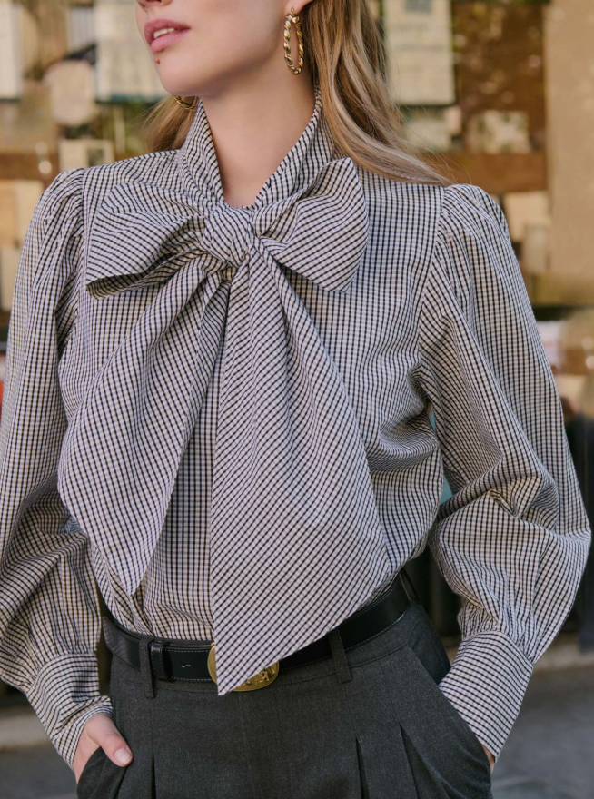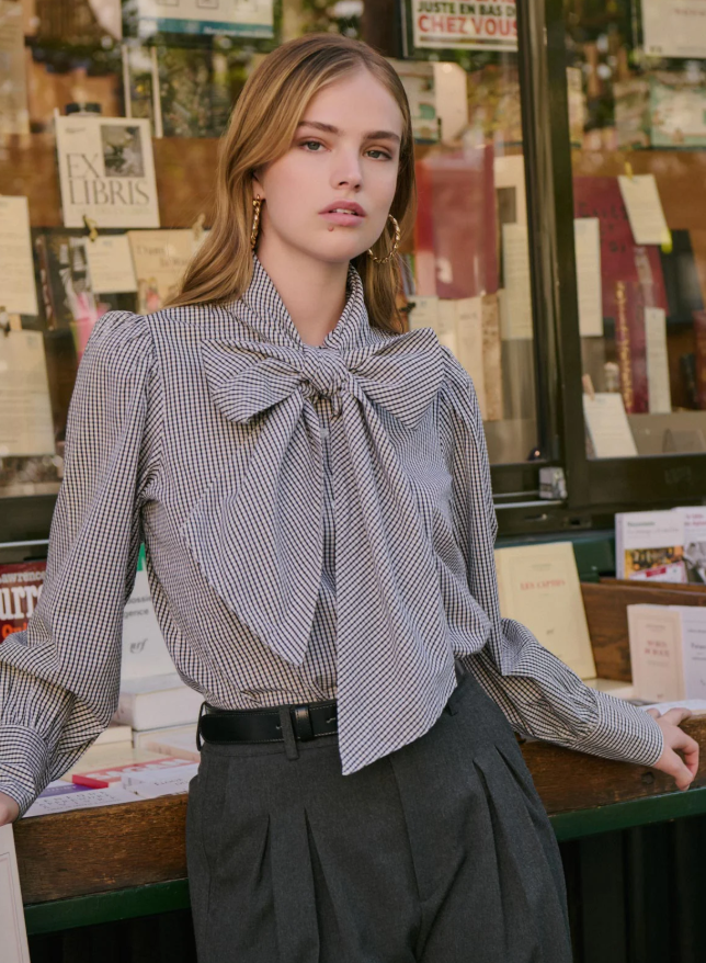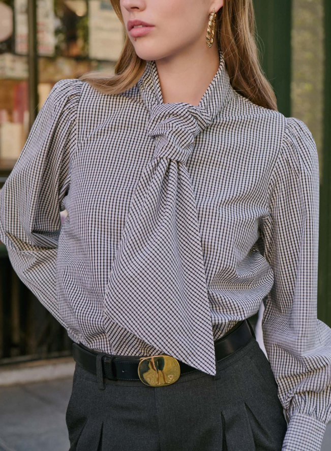 Tobias – Camisa con estampado vichy y cuello lavallière – Negro.