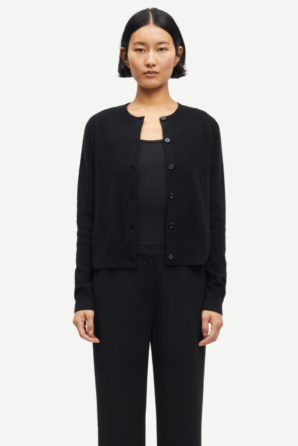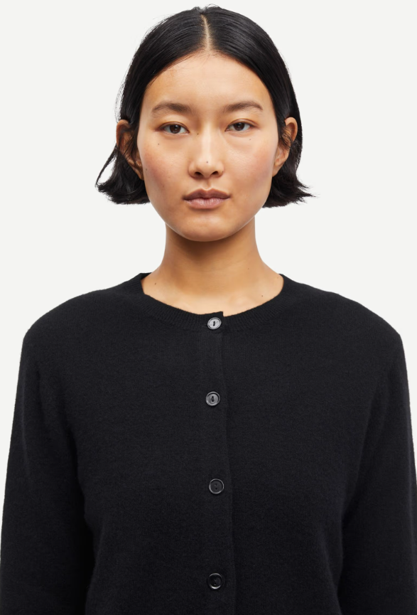 Cárdigan de corte regular. Cierre de botones en la parte delantera. Cuello, puños y bajo de punto acanalado. Material principal: 100 % cachemira.