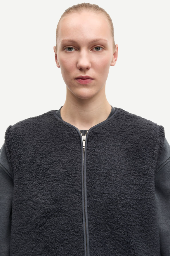 Chaleco polar de corte holgado. Cierre de cremallera frontal. Bolsillos laterales con abertura frontal. Material principal: 100 % poliéster reciclado. Este producto cuenta con la certificación GRS. Cada etapa de la cadena de suministro cumple con estrictos requisitos sociales, ambientales y químicos.