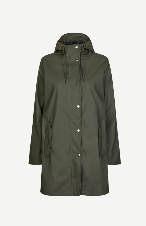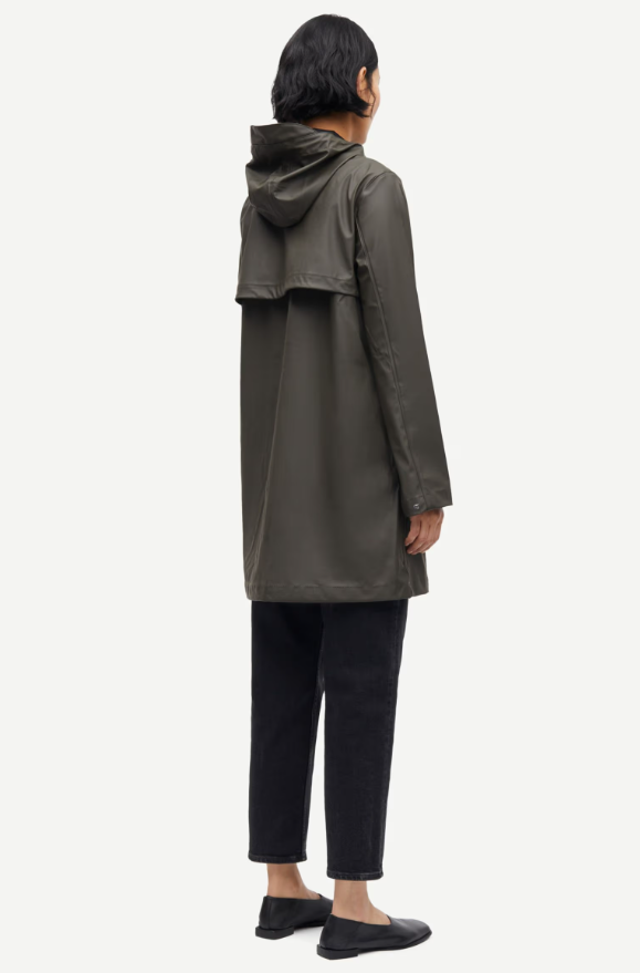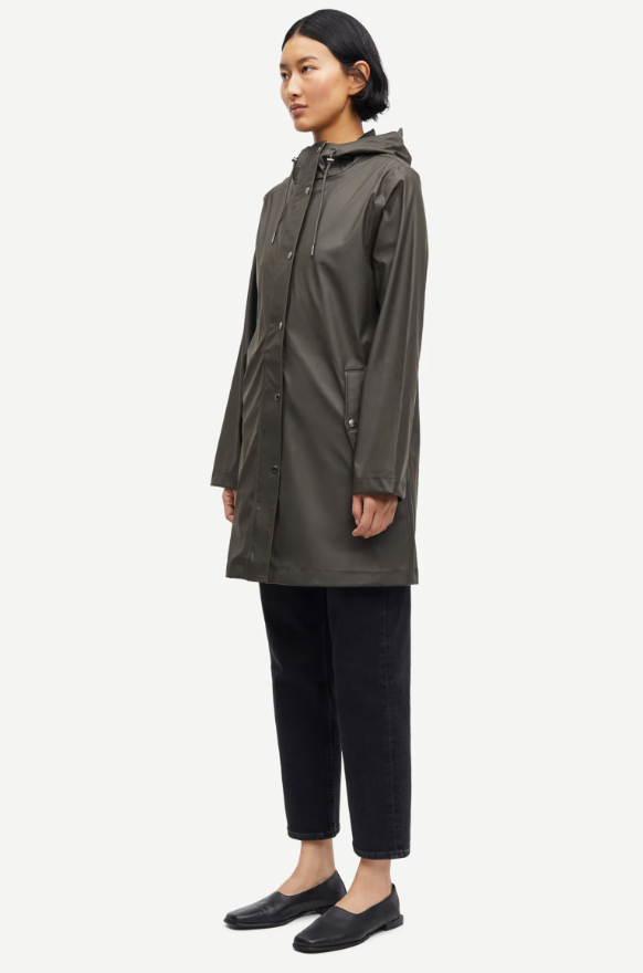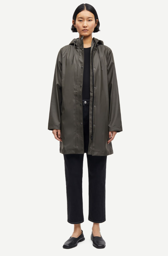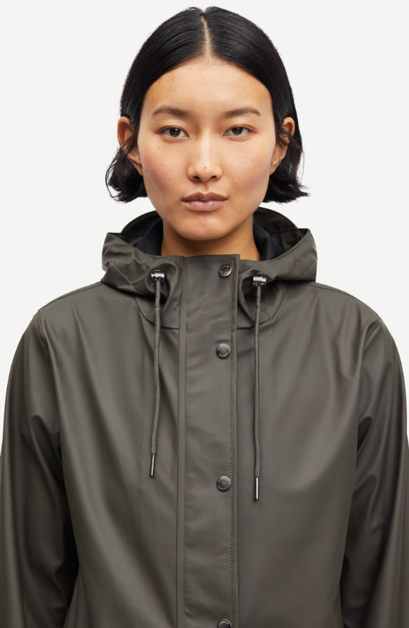 Chubasquero de corte regular. Cierre frontal con cremallera bidireccional y botones a presión, y puños con botones a presión. Bolsillos delanteros con solapa y botones a presión. Costuras selladas. Cordón y capucha con parasol. Material repelente al agua y cortavientos. Presión de columna de agua de 4000 mm.