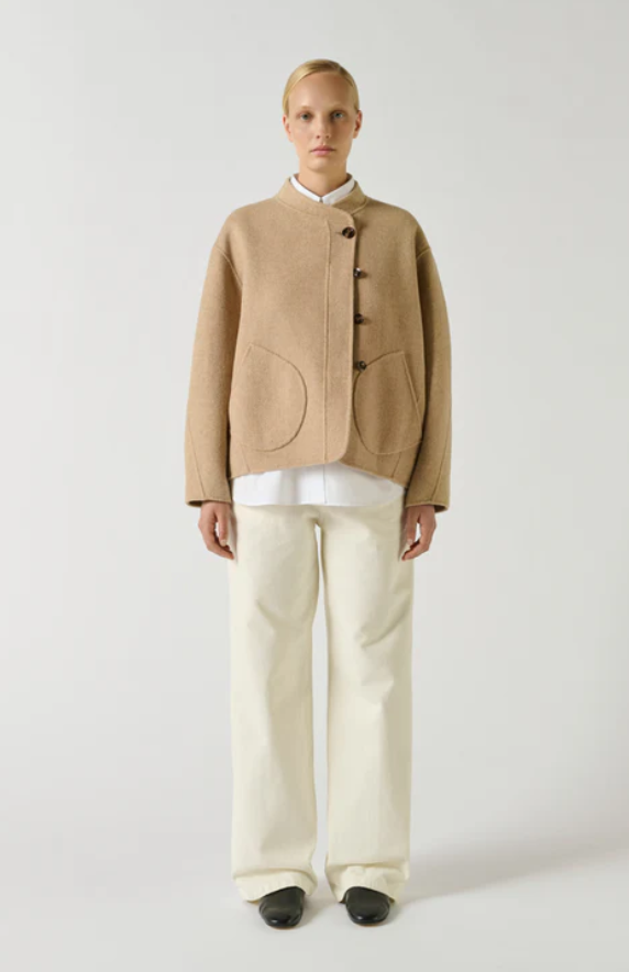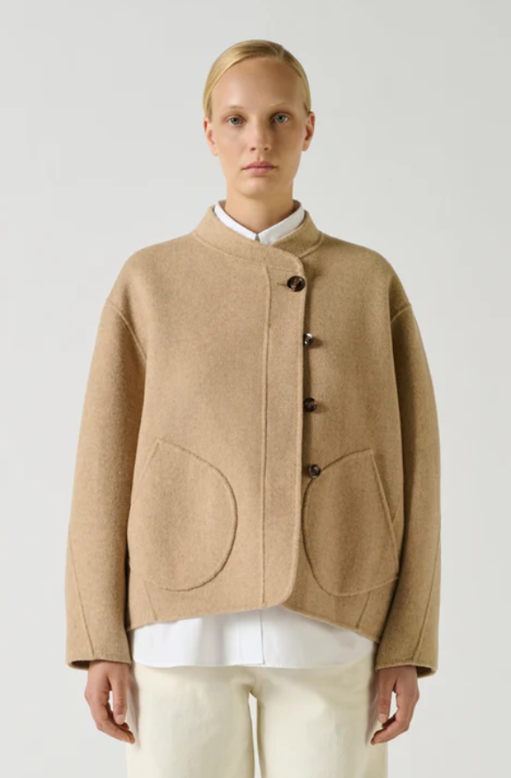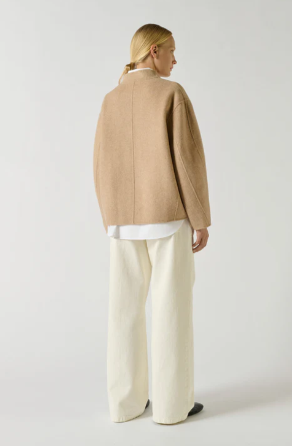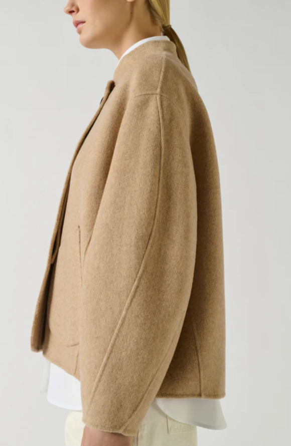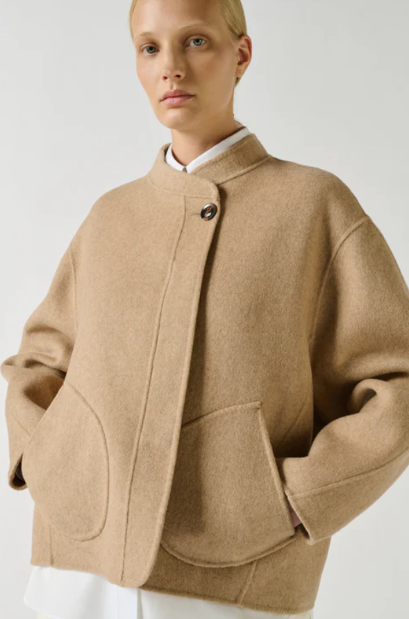 WINDSOR es un pequeño abrigo renovado con líneas depuradas. La apertura asimétrica y los bolsillos discretos refuerzan su apariencia minimalista. Su volumen corto y su color beige claro lo convierten en una opción ideal para la media estación.