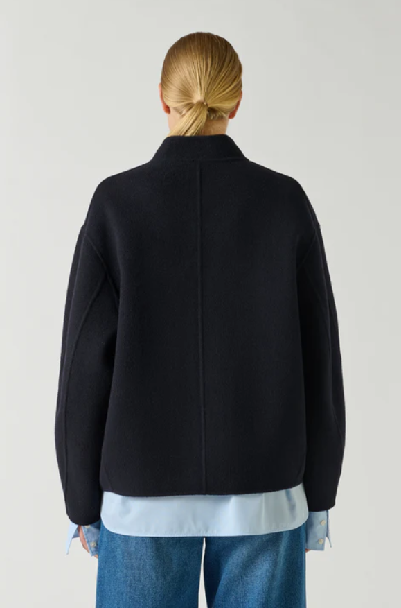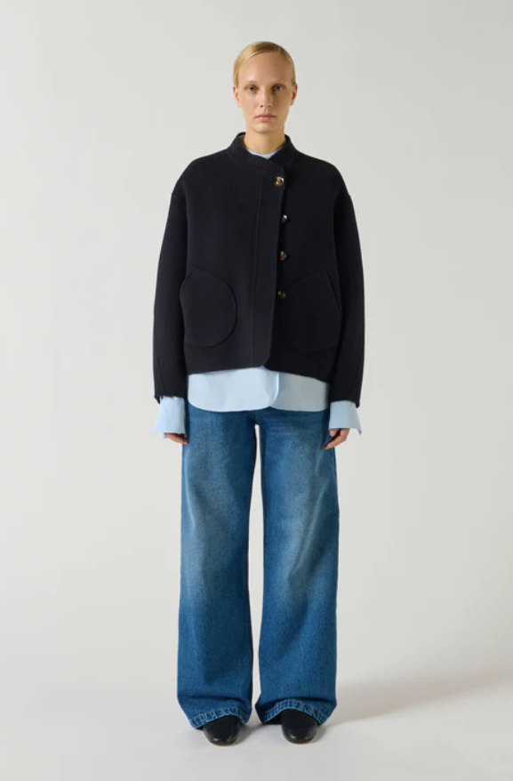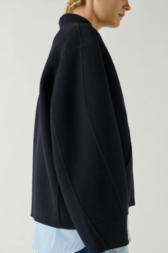 WINDSOR es un pequeño chaquetón rediseñado con líneas depuradas. La abertura asimétrica y los discretos bolsillos refuerzan su estilo minimalista.