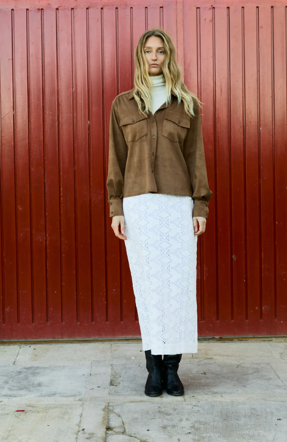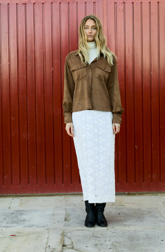 Falda cintura elástica. Abertura en parte de atrás.