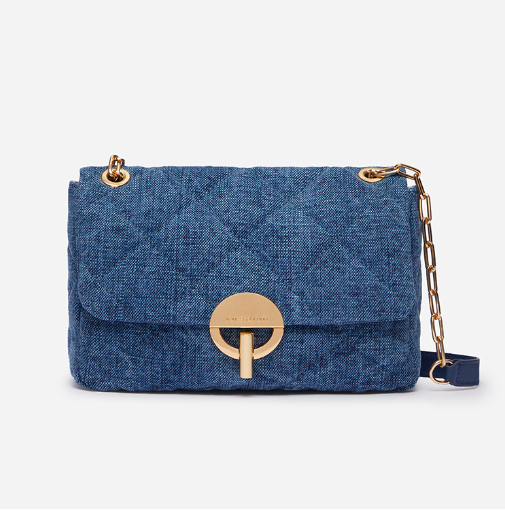 Un gran clásico de Vanessa Bruno, el bolso Moon se renueva aquí en una versión de lino. Ligera y veraniega, esta versión acolchada está realzada por un elegante pespunte y su icónico cierre dorado, y puede llevarse al hombro o cruzado gracias a su cadena y su bandolera de piel.