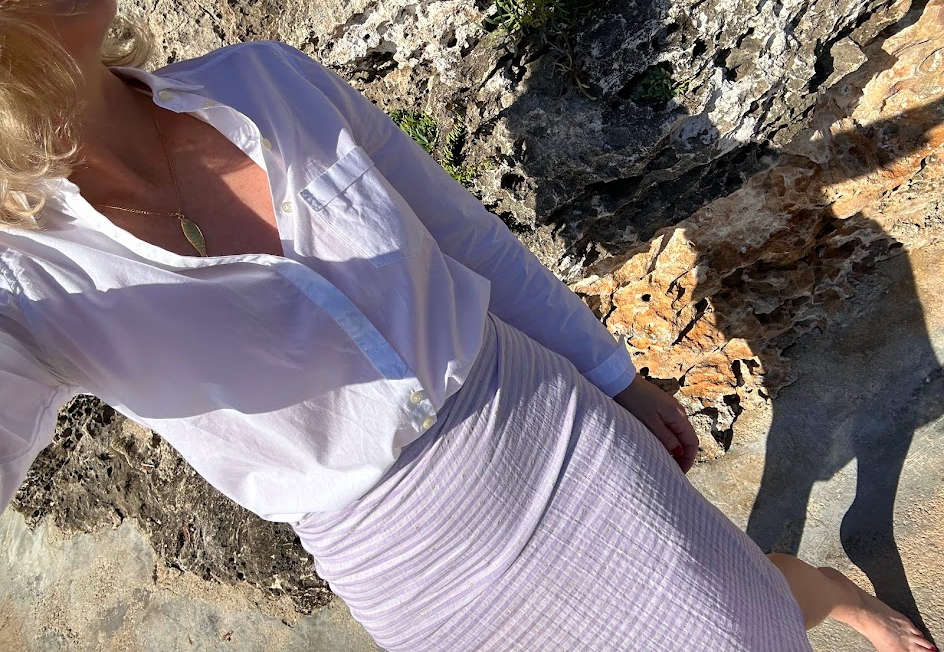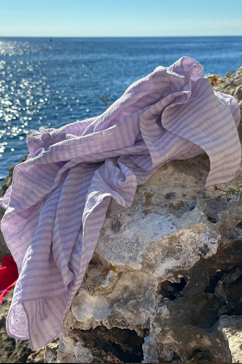 Pareo lila con hilo metalizado dorado.