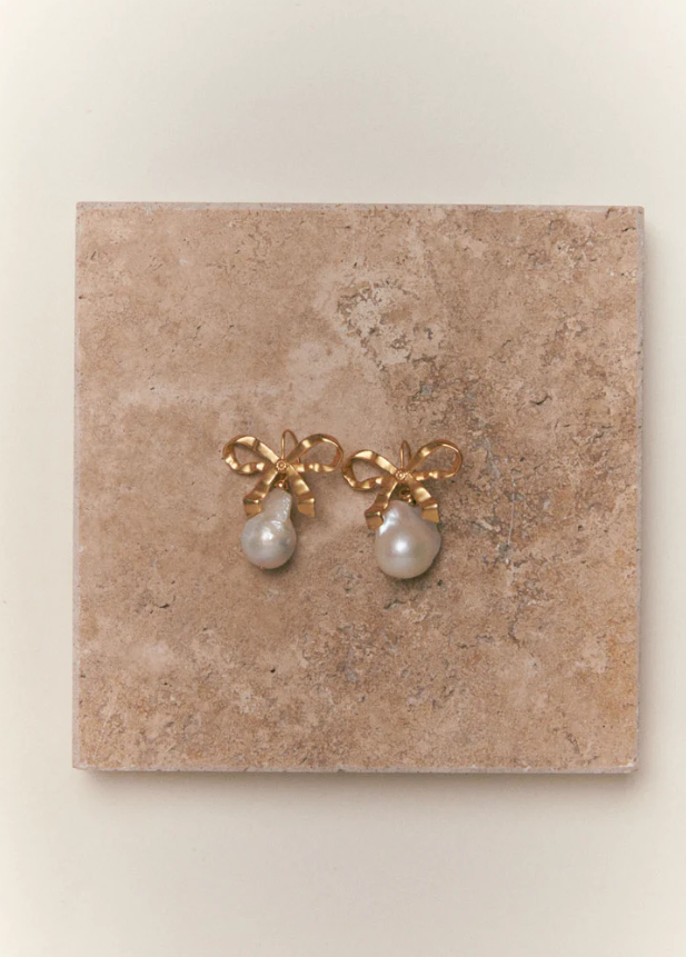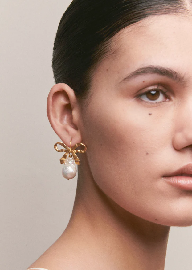 Inspirados en la joyería de la antigua Roma, los pendientes Flavia combinan la ligereza de una filigrana en forma de lazo con la pureza atemporal de una perla barroca. Este tipo de diseño fue especialmente popular entre la aristocracia durante el Siglo de Oro español, y aún hoy puede apreciarse en retratos de la época, donde destacan detalles similares.