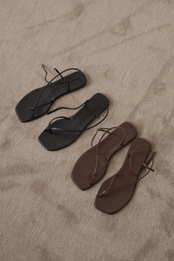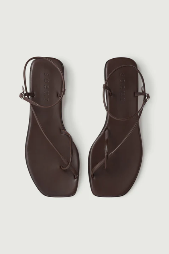– Sandalias planas de piel marrón