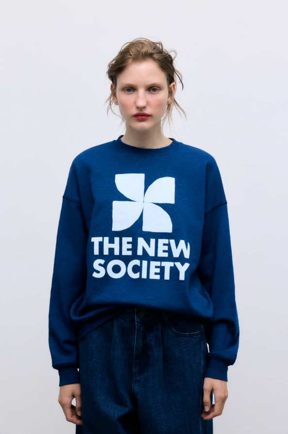 Sudadera con logotipo de TNS para mujer, color índigo océano.