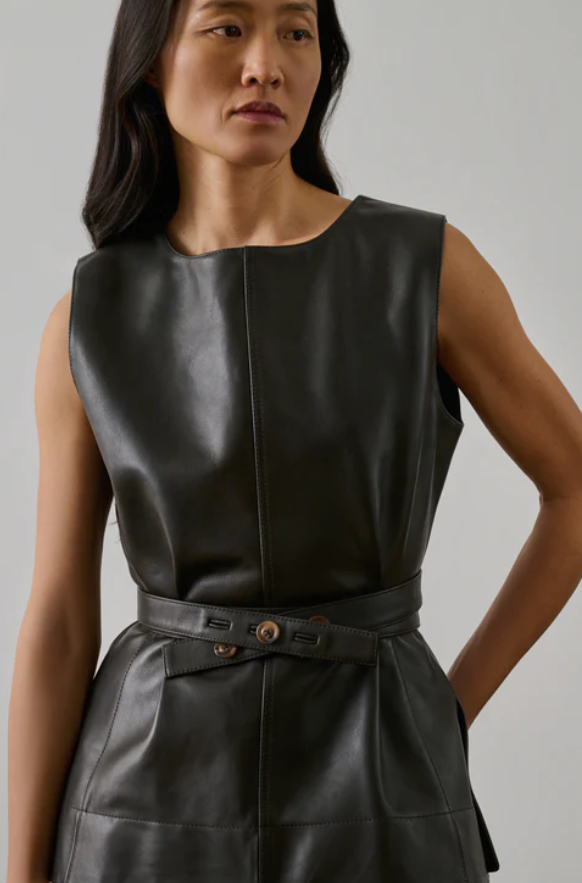 – Cierre de cremallera en la espalda, pequeño gancho y cinturón