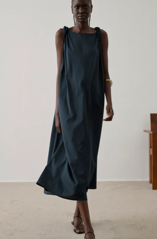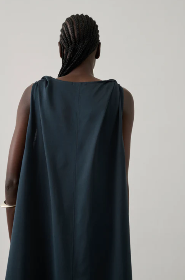 VESTIDO DEBBY DRAPEADO SIN MANGAS DE PUNTO DE ALGODÓN ORGÁNICO.