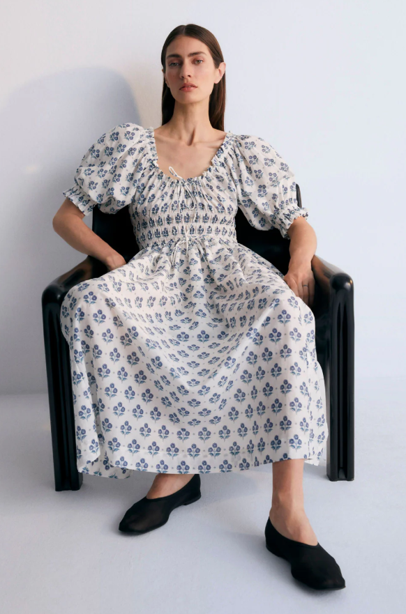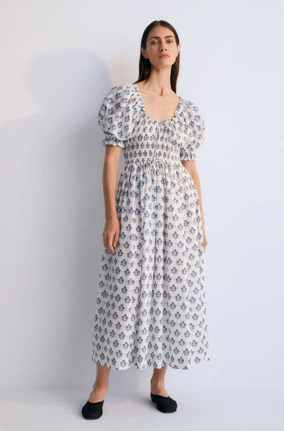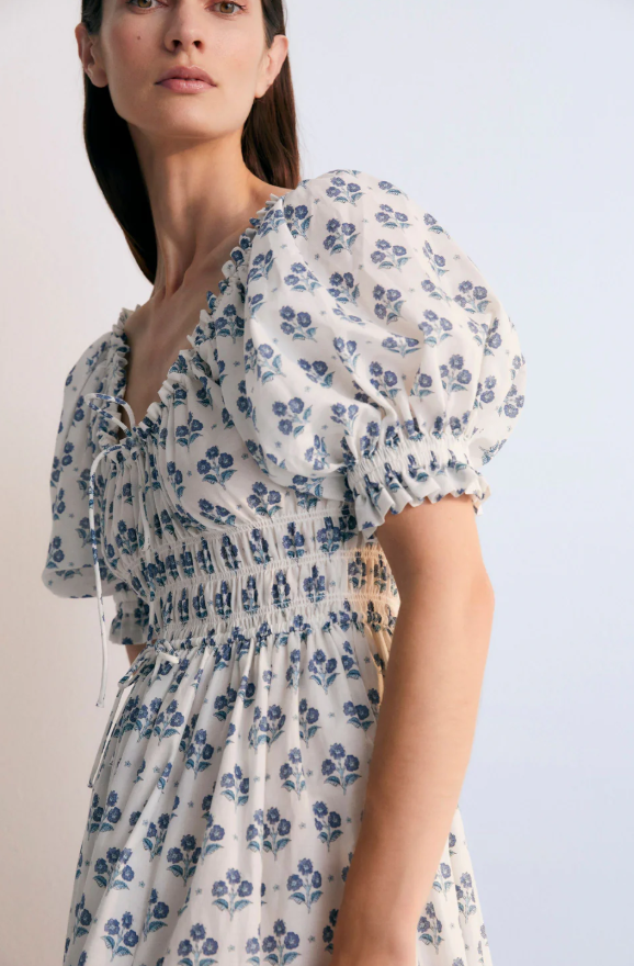 El vestido de Eleni Woman, nuestro bestseller, ahora viene en nuestro estampado Hyacinth de Signature, elaborado con 100% de Poplin de algodón para una sensación ligera y transpirable.